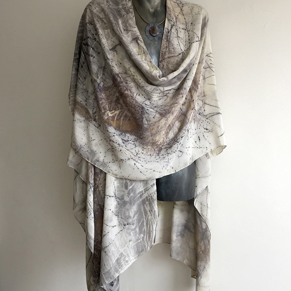 Eco dyed Silk Cape is handmade and exclusive. Yaja incorporates ancient dyeing techniques into her own unique style and methods. She collects eucalyptus leaves, bark and native plants, heating them gently...
