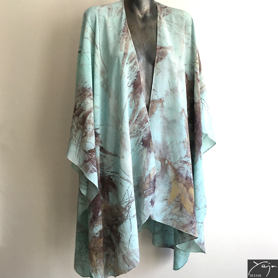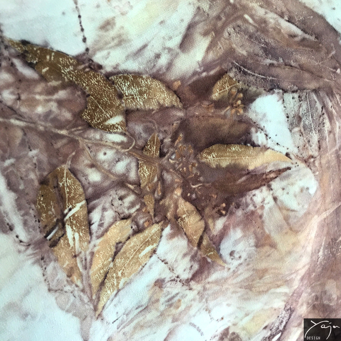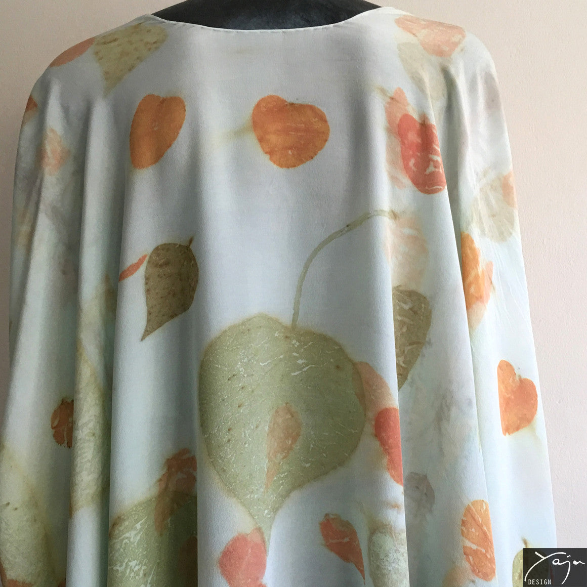 Yaja Design silk garments are handmade and exclusive. For each piece, Yaja incorporates ancient, natural dyeing techniques into her own unique style and methods. She collects native plants, leaves, flowers and bark and steaming them gently with pure silk to create evocative, delicate patterns reflecting the beauty of Australia’s natural environment.