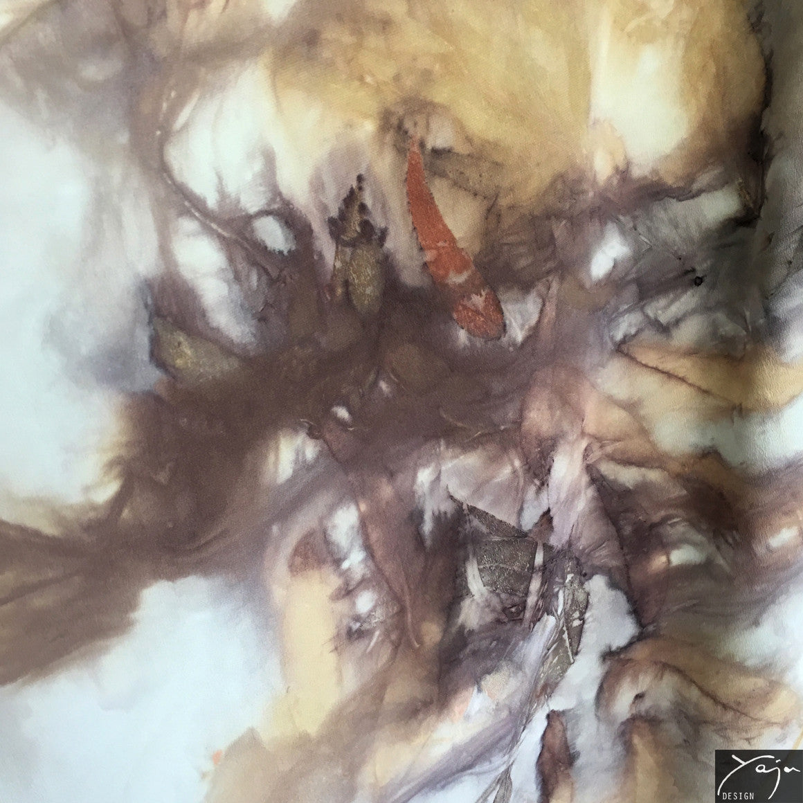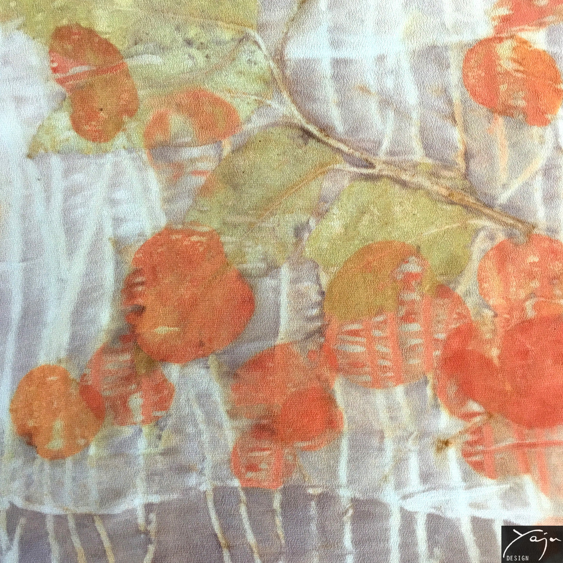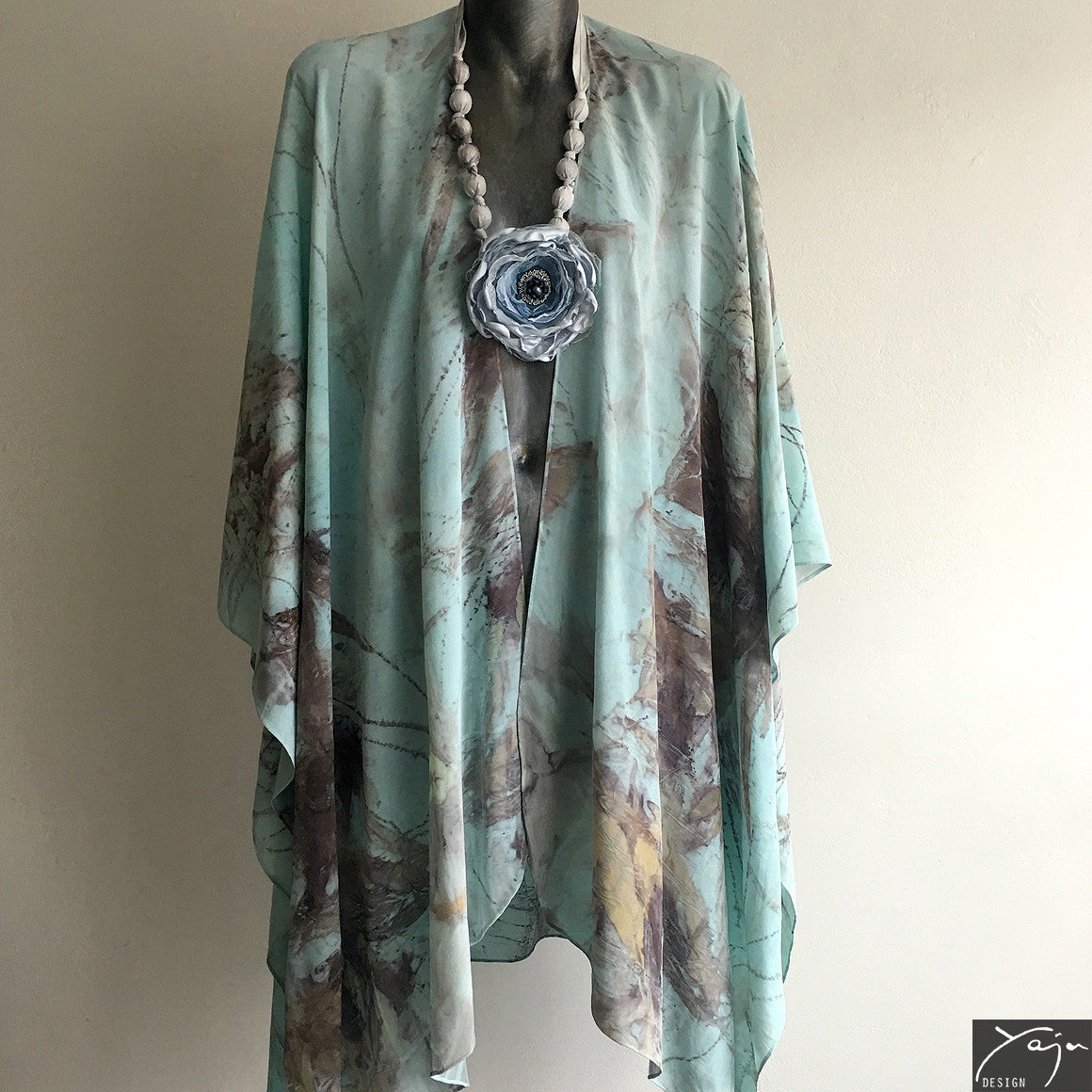 Yaja Design silk garments are handmade and exclusive. For each piece, Yaja incorporates ancient, natural dyeing techniques into her own unique style and methods. She collects native plants, leaves, flowers and bark and steaming them gently with pure silk to create evocative, delicate patterns reflecting the beauty of Australia’s natural environment.
