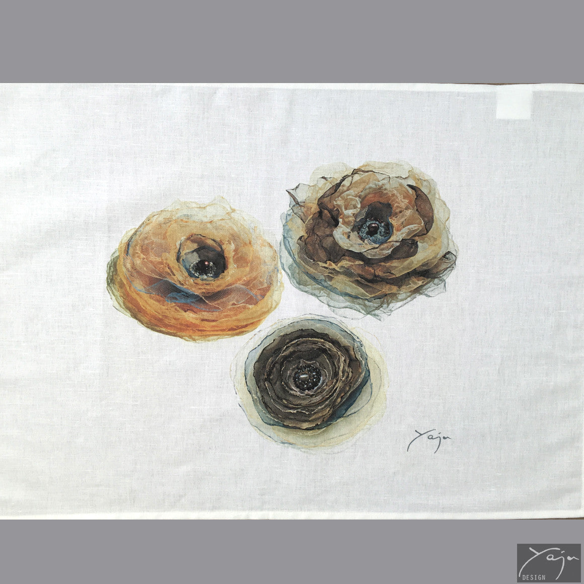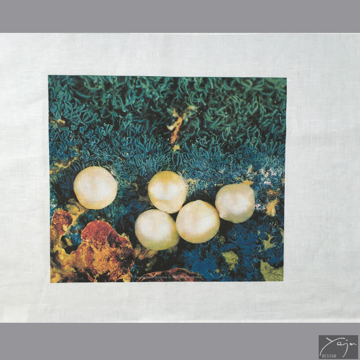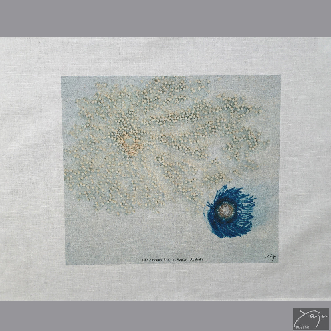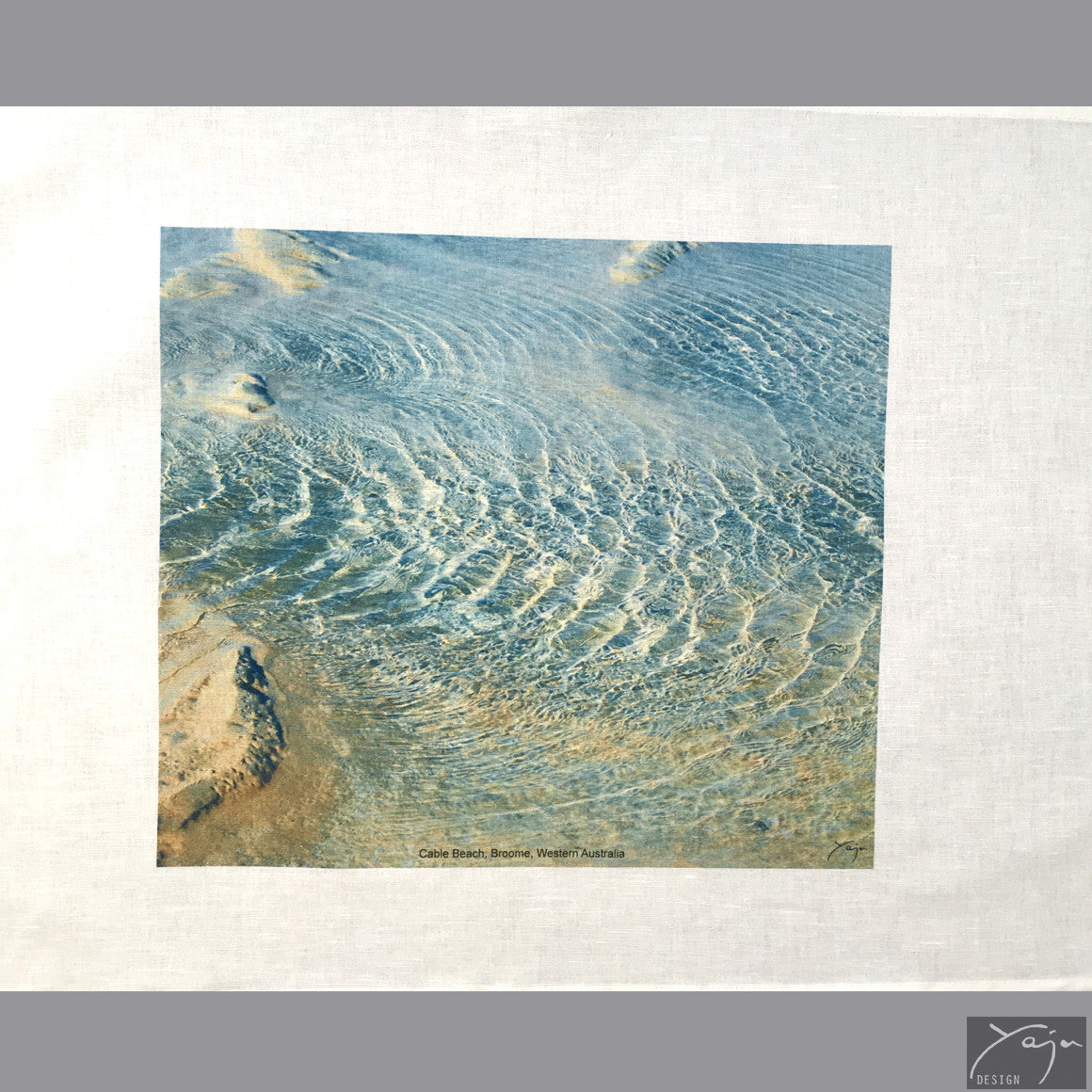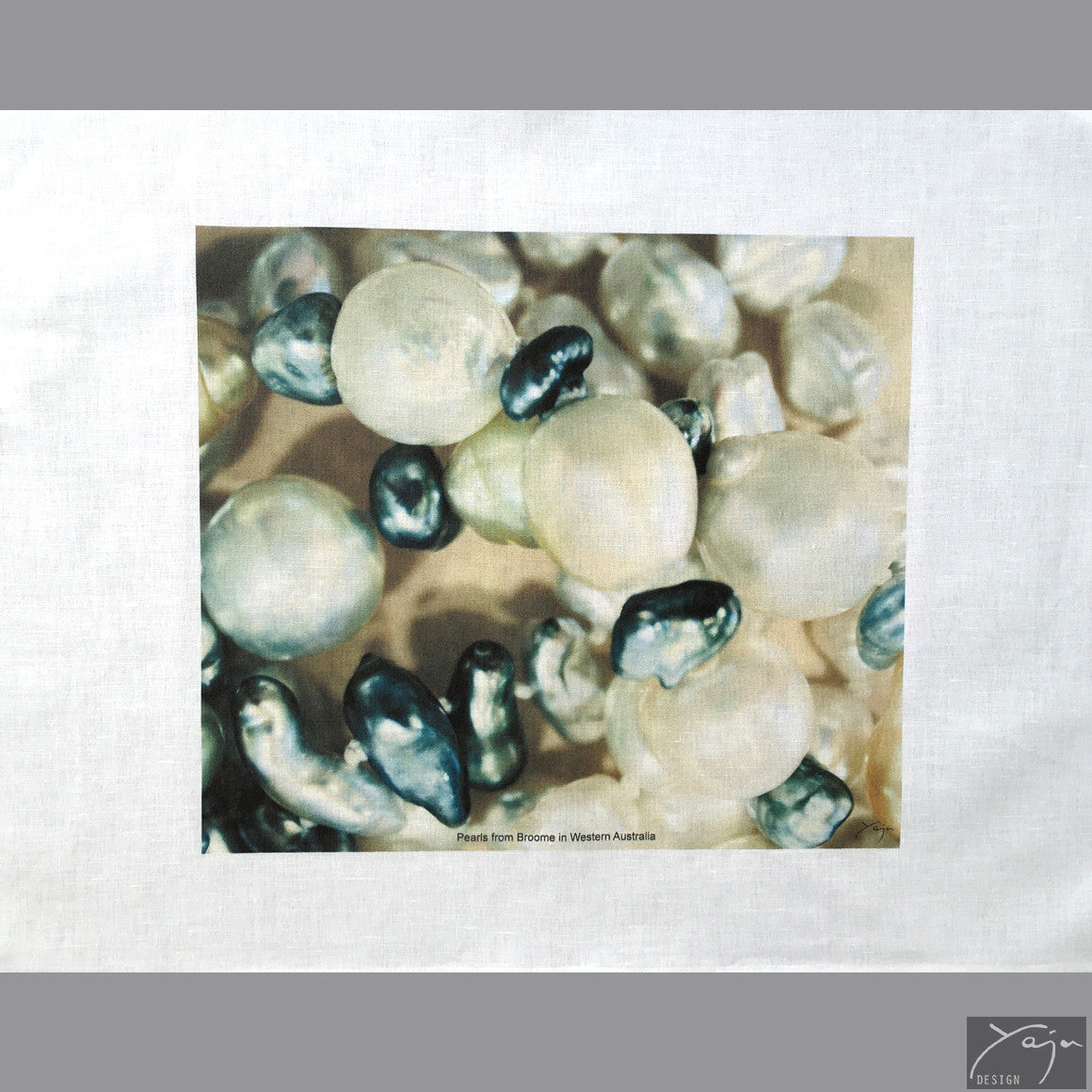 Yaja Design’s limited addition tea towels raise the ordinary into the extraordinary. Digitally printed with never to be repeated photographs of Broome pearls, sand patterns and its world renowned sunsets Yaja has added imagery of her spectacular Imaginary Flowers to add vivid impact. The perfect gift for those who value beauty plus practicality.
